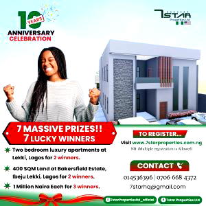 Be that Star with a step now, visit the 7star Properties website (www 7starproperties.com.ng) to buy your raffle draw ticket.