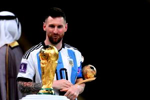 In a tweet on their Twitter page, Barcelona shared a photo of Messi kissing the World Cup trophy while cradling his Golden Boots award.