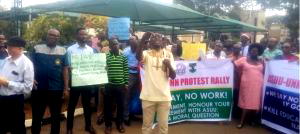 Some members of the Union who protested to the Vice Chancellor’s office and other faculties in UNN bore placards with the following inscriptions:”We say no to bad governance, ASUU members lives matter; pay us our salary backlogs; no pay, no 2020/2021 academic session results. We say no to pro-rata; our Government does not honour agreement; get ready for mother of all strikes,” among others.