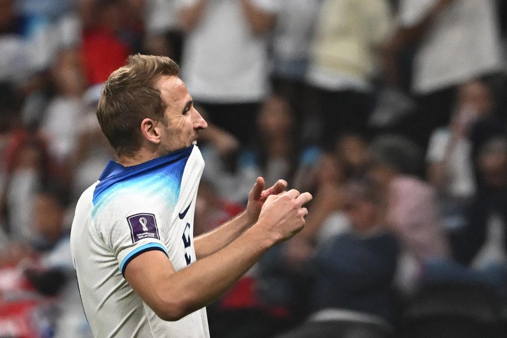 England’s forward #09 Harry Kane reacts after he missed a penalty kick during the Qatar 2022 World Cup quarter-final football match between England and France at the Al-Bayt Stadium in Al Khor, north of Doha, on December 10, 2022. (Photo by Anne-Christine POUJOULAT / AFP)
