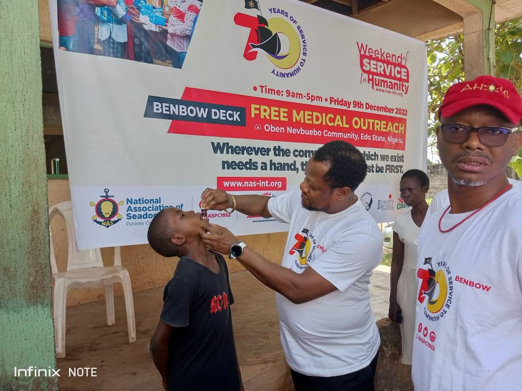 BENIN CITY – THE Benin City Metropolitan Branch of the National Association of Seadogs (NAS) popularly called Pyrates Confraternity on Friday embarked on a free medical outreach for the people of Obenevbuebo community in Ikpoba-Okha local government area of Edo state besides donating education materials for pupils in Asoro Primary School along Sokponba Road in Benin City.