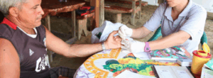 © PAHOA Malaria Service Deliverer uses a rapid diagnostic test to test a man...